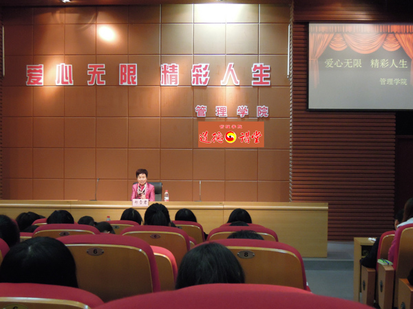 12月15日晚,学院管理学院以“爱心无限 精彩人生”为主题的道德讲堂在学术报告厅如期举行。本次道德讲堂邀请到第十二届全国人大代表,温州晚报《雪君工作室》主持人郑雪君总編为主讲嘉宾,管理学院张勰老师和陈君老师参加本次讲坛,现场有近200位管理学院学生参与。