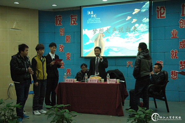 本次活动在一首美妙的歌曲《肩上的翅膀》中开幕,三位校友简单地自我介绍之后,向在座的同学描述了他们的大学生活,生动地讲述了自己的创业故事,并结合自己的创业经历,就大学生如何规划大学学习生活,如何正确面对就业与创业之间的抉择以及在创业之路上将会遇到哪些困难等问题阐述了自己独到的见解。之后,三位嘉宾与在场的学弟、学妹们进行了互动交流,对同学们提出的创业初期如何解决资金问题、如何选择适合自己的创业方向等问题作了详细的解答。现场气氛十分活跃。