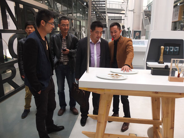 调研组一行参观了新落成的温州市省级特色工业设计示范基地、7号艺术中心、学院六大创意设计类专业工作室,并逐一了解入驻企业。如巧木良工、HKSTAR、3D打印公共服务平台等。随后,周辉处长与园区主要负责人在园区企业浙江思珀整合传播有限公司内进行了座谈交流。
