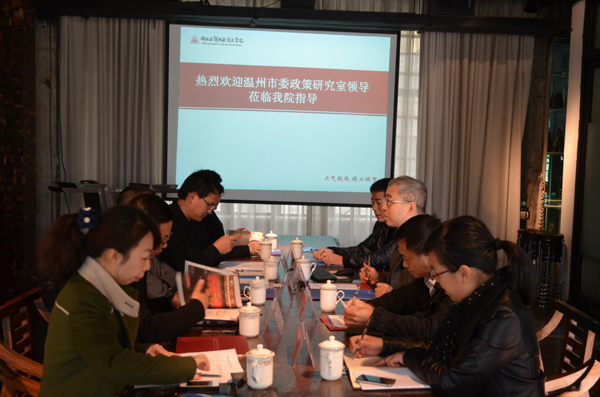 王晓春副主任就市委政策研究室和决咨委的基本情况、现阶段及下一步研究方向作了介绍,并表示下一步将加强合作交流,研究和开发学院特色科研项目,共建共享共助温州“生态型、组团型、智慧型”城市建设。