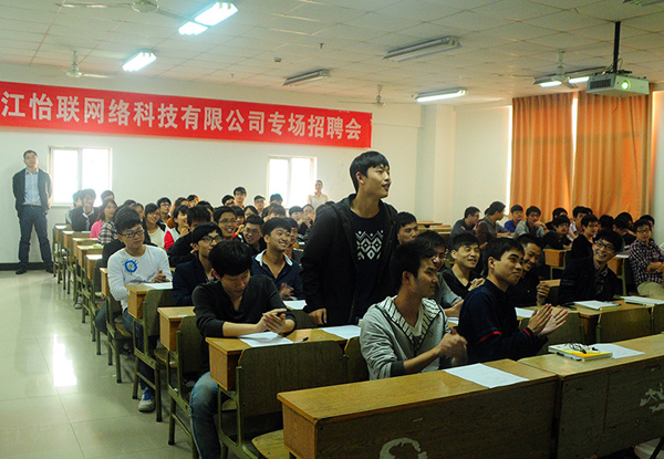 11月7日下午,我院信息传媒学院和浙江怡联网络科技有限公司共同组织举行专场招聘会,计算机应用技术和软件技术专业2014应届毕业生参加了招聘会。会上,怡联公司的负责人介绍了公司概况和招聘岗位的相关要求,并与部分毕业生进行了就业意向的面对面交流,达成了初步意向。