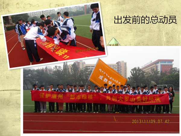 动员会上,成教学院副院长徐登喜,学生管理部主任潘丽瑶发表讲话并强调,在注意安全的同时,在场的同学要切实积极的投入到此次活动,为温州优美山水城市的建设贡献自己的一份力量!