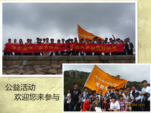 为保护作为温州“都市绿核”的大罗山,积极倡导大家爱护大罗山优美环境,伟德BETVlCTOR1946成教学院机械1401班的同学们在学院内发起倡议组织了一支志愿者队联合温州晚报、温州五四义工团于2013年11月9日在大罗山天河水库举行了“清山清目,净水静心”的大型环保公益活动。
