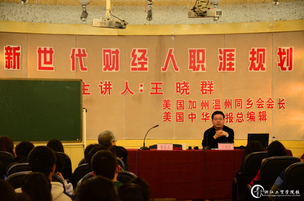11月12日下午,美国加州温州同乡会会长王晓群为我院师生作了一场主题为“新世代财经人职涯规划”的讲座,并与相关分院系老师进行了项目洽谈,两场活动均由贺星岳院长主持。