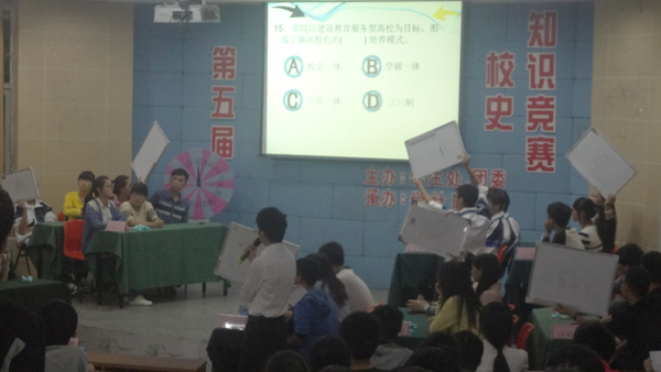 学院作历经半个多世纪的发展过程中七易校名,绵延至今。为了使学生了解母校、爱护母校,与母校同荣辱、共发展,此次校史知识竞赛设计了全面、深刻的竞赛题,并通过新颖比赛形式,如先声夺人、幸运大转盘、弱者为王、对号入座、大家一起来、一招定胜负六大环节,吸引了各院系的学生积极参与。通过一个小时的角逐,各支队伍的得分情况已逐渐分晓:第一名为轻工系;第二名为管理学院;第三名为信息传媒学院,最具潜力奖由经贸学院摘得。