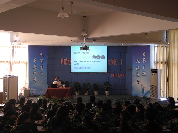 9月23日下午,技师学院(温州校区)在阶梯教室举行了新生传统文化教育。浙江传统文化促进会的彭辉老师以图文并茂的形式将传统文化娓娓道来,让大家能够在潜移默化中了解如何在日常生活中更好的发扬美德,不断提升自身的道德素养,此次传统文化教育的开展,有助于广大学生在军训期间感悟中华五千年历史流传下来的民族传统美德,进而对同学们产生良性的影响,为以后的在校学习、生活打下良好的道德基础。