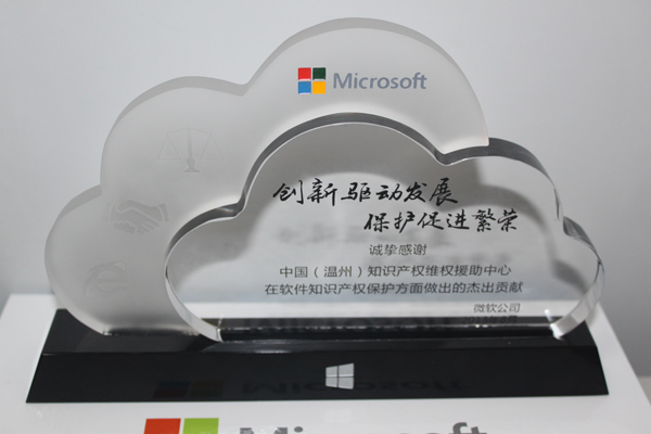近日,微软中国公司派代表专程到温州市知识产权服务园就微软公司就在温州有关侵权案件的调解情况表示诚挚的谢意并送上水晶牌匾。微软中国公司的代表表示,服务园开创的诉调对接机制低成本、高效率地解决温州地区的多起版权侵犯纠纷,及时化解社会矛盾,给微软在全球开展知识产权维权提供了诸多值得借鉴的做法。