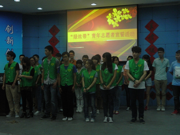 爱心献社会 真情暖人心——经贸学院顺利举行“绿丝带”青年志愿者宣誓活动