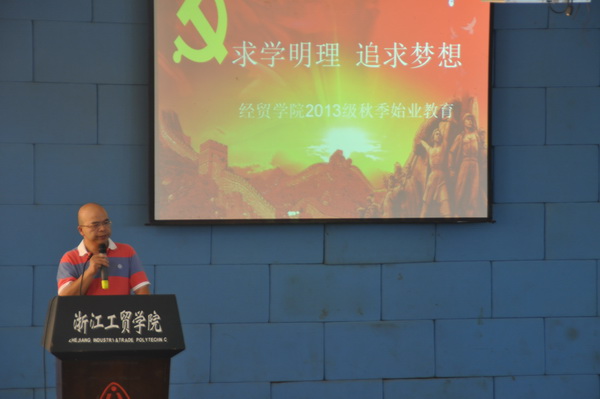 9月15日下午,经贸学院在阶梯教室举行以“求学明理 追求梦想”为主题的2013级新生始业教育暨开学典礼。此次新生始业教育根据专业分两场进行,2013级共640余名新生参加会议。经贸学院党总支书记项光春、经贸学院院长汪焰分别讲话,并对2013级新生提出具体要求。经贸学院全体行政人员和2013级各班班主任出席,会议由经贸学院院长助理丁长峰老师主持。