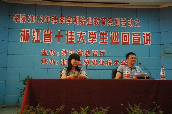 9月18日下午,浙江省“十佳大学生”巡回宣讲先进事迹报告会在学院阶梯教室举行。来自浙江医学高等专科学校临床医学系学生陈斌和嘉兴学院对外汉语2009级学生梁栩晔作为浙江省“十佳大学生”获奖代表分享了他们的成长经历和心路历程。学院副院长倪建发出席会议,并与学院400多名新生代表聆听了报告会。