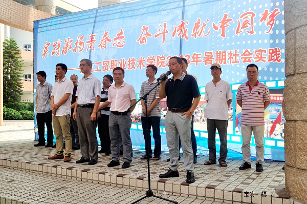 指导老师沈智毅代表全体社会实践指导教师发言,他告诉参加社会实践的同学们要活跃思维、勤思多问,努力提高自己发现问题、分析问题、解决问题的能力,在实践中提升素质;要敢于吃苦,不怕困难,发扬“奉献、友爱、互助、进步”的志愿服务精神。
