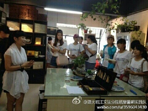 2013年7月11号,温州大学瓯江文法学院瓯塑暑期社会实践队来我校学习瓯塑。区域文化中心瓯塑研究室郑央凡老师对温州大学瓯江文法学院瓯塑暑期社会实践队的学生讲解瓯塑艺术的历史与发展,让他们对瓯塑有了更深厚的了解,并传授瓯塑的基本制作技法。