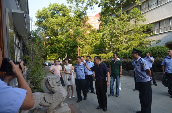 8月6日下午,鹿城公安分局局长金国平、常务副局长周晓之、蒲鞋市派出所所长叶展宇等一行在学院党委副书记、纪委书记、副院长盖庆武、温州鹿城区委委员、常委黄专途等陪同下对我院校园安全与稳定工作进行了调研。