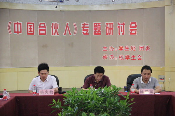 为推动立德树人工作,结合学院创新创业教育年工作部署,发挥网络思政素材的育人功能,大力推进学院创新创业教育,6月8日晚,由学生处主办,以“创新创业教育之励志成功教育系列活动”为主题的《中国合伙人》专题研讨会在多功能报告厅进行。学生处处长王春柳、团委副书记陈碎雷、杨忠敏学长和各院系组织学生代表到场参加专题研讨。