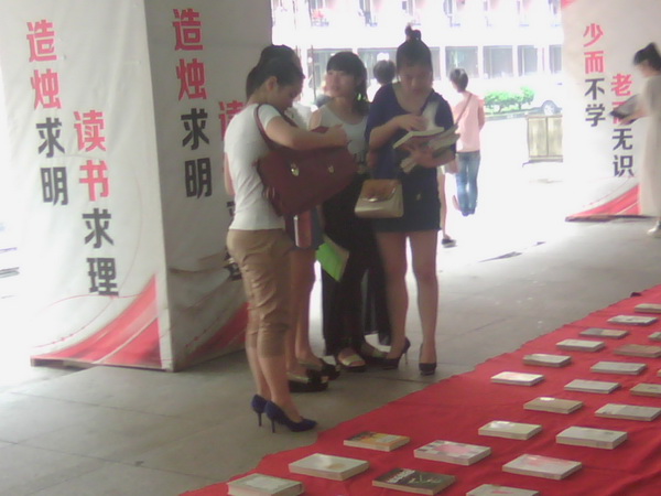 该活动不仅吸引了学生,也引起了学院老师的兴趣。有几位老师驻足在我们的书摊前,不仅自己翻阅图书,还为同学们介绍了几本有意义的好书。