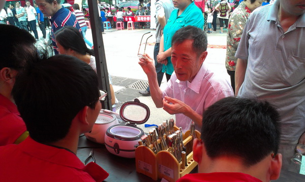 “红马甲” 志愿者义工们利用自己所学的专业知识帮助大家。眼视光专业的志愿者带上了仪器为有需要的人修理及护理眼镜;瓯塑工作室的志愿者们在现场制作瓯塑作品,吸引了很多人的眼球;更有参与过“春运关爱行动——帮农民工网络购票”的志愿者带上了电脑在现场耐心的教大家如何网络购票。活动结束后,温州市慈善义工总会的项有连会长对我们工贸学子的慈善服务意识表示了充分的肯定和赞赏,并鼓励我们再接再厉,为温州的慈善义工事业做出更大的贡献。