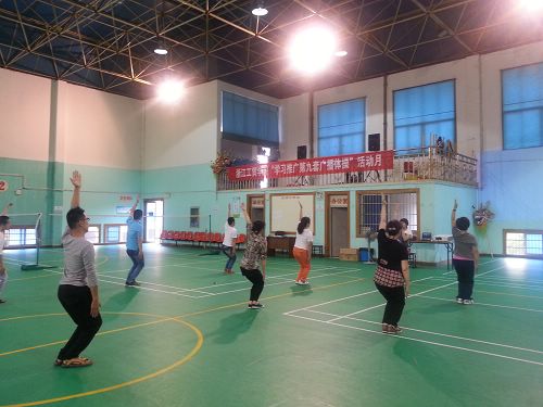 为认真贯彻落实《全民健身条例》和《全民健身计划(2011-2015年)》,更加深入广泛地开展全民健身活动,积极响应杭钢集团公司工会组织开展学习《第九套广播体操》的号召,不断创新和丰富体育健身活动的内容和形式,满足人民群众日益增长的多元化体育健身需求,学院工会在全院范围内开展第九套广播体操的推广普及工作。