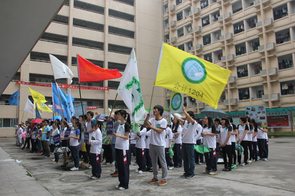 比赛分为两个环节,第一环节为各班团日活动展示。5月10日中午各班级围绕整个校园进行游园活动,各班同学挥舞着班旗、展示着各班的海报,队伍非常壮观。下午的比赛在周末文化广场进行,各班展示本班级所做过的各种团日活动、青年活动、班级自行举行的活动的照片及展示本班级同学特长特色。会计班竹竿舞,酒店管理专业的叠纸巾,还有导游班的跪羊图,人力班的魔术等等形式各异,精彩纷呈。