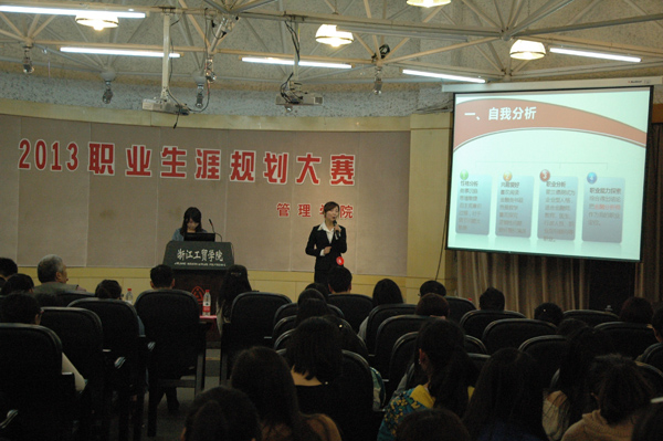 大赛在主持人热情洋溢的开场词中拉开了序幕,每位参赛选手借助PPT演讲自己精心准备的职业生涯规划。他们在大赛中放飞梦想,畅谈未来,激情澎湃。利用SWOT分析、霍兰德职业测验进行自我分析,选手们从自身的优势劣势出发,制定了职业生涯规划中短期,中长期和长期目标。他们有的把招聘经理作为自己的职业目标,有的希望在创业之路上有所成就。选手们自信精彩的演讲博得了现场观众的阵阵掌声。评委点评,也让他们受益匪浅。比赛结果,人力1201邵宏达同学获得了职业组一等奖,人力1101李芳影同学获得了创业组一等奖,其他的参赛同学也分别获得了二等,三等以及优胜奖。