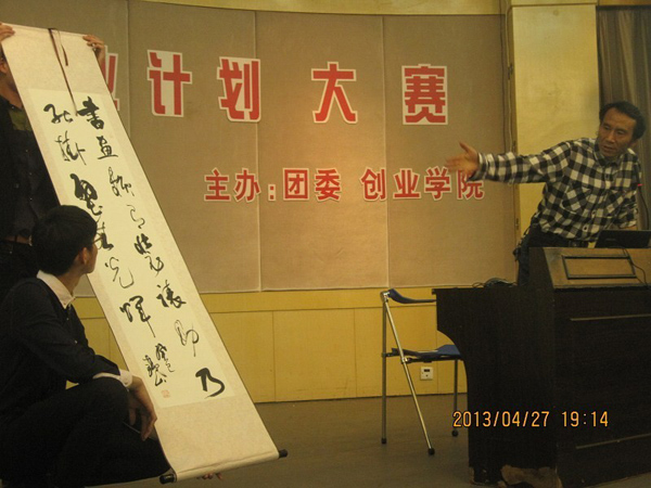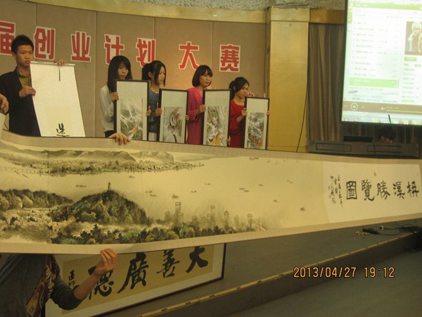 本次大赛分PPT演讲及现场答辩两个环节。在PPT演讲环节,各支队伍都展示了各自团队的创业计划,计划中对于公司创业的管理、营销、利润获取及长运发展做了详细的表述。复杂的数据、专业的术语在创业团队成员淋漓尽致的阐述下变得浅显易懂。参加本次大赛的十支队伍分别涉及商务、工业设计、信息、印刷、文化传媒、服务行业等领域。在第二个现场答辩的环节,各位评委对各个团队提出各种建设性意见和问题,创业队伍睿智回答更是引发现场观众的阵阵掌声。在各支队伍精彩的演讲中,让人印象最深刻的是“墨斋艺术装裱”。中国书法是世界独特的一种艺术,而装裱更是为此锦上添花,不仅有保护书画作品的作用,更是提高了作品的艺术价值。“墨斋艺术装裱”团队更是用机械装裱代替了人工装裱,保证了作品品质,提高了工作效率,降低了费用成本。