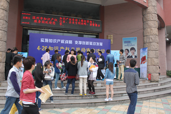 4月26日上午9:30,由温州市科技局(知识产权局)、伟德BETVlCTOR1946共同主办,温州市知识产权服务园承办的大型广场宣传活动在温州知识产权服务园门口举行。本次现场咨询服务活动,主要受理专利纠纷维权援助、专利申请、商标申请、企业知识产权质押咨询、专利转让登记以及专利资助政策讲解等咨询。