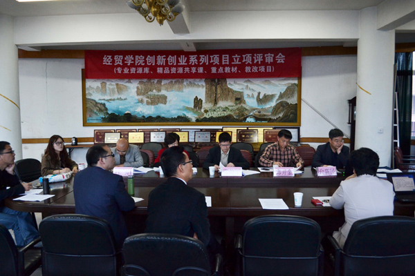 5月6日下午,经贸学院在1号楼6楼会议室举行专业资源库、精品资源共享课、重点教材、教改课题等创新创业系列项目评审会。学院副院长张俊平、高职研究所所长邱开金、教务处处长程有娥、校企合作办主任台新民等应邀出席,分院院长汪焰、院长助理丁长峰及各教研室主任参加了本次会议。