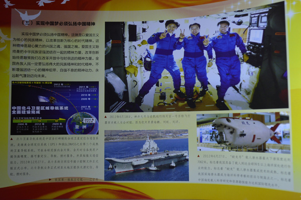 为深入学习宣传贯彻党的十八大精神,引导广大师生员工为实现国家富强、民族复兴、人民幸福的伟大“中国梦”而不懈奋斗,近日,学院党务工作部在六号教学楼一楼举办“中国梦——中华民族复兴之路”图片展。本次图片展选取了近百幅珍贵图片,包括中华民族的昨天——“雄关漫道真如铁”、人间正道是沧桑——走中国特色社会主义道路、长风破浪会有时——共圆“中国梦”等三部分。展览全面回顾了中华民族面对列强的凌辱、面对新中国成立初期的一穷二白、面对奋斗征程中的坎坷与挫折、面对巨大的自然灾难,一代代中国人怀揣梦想,追逐梦想,挺直脊梁,顽强奋斗,走出苦难,走向辉煌的170多年历史;回顾了为实现民族复兴的伟大梦想,党领导人民一路风雨兼程,一路慷慨壮歌,终于开辟了中国特色社会主义强国之路、富民之路、复兴之路的90多年历程。