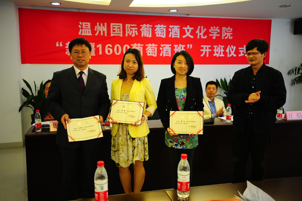 首先,张俊平副院长代表温州国际葡萄酒文化学院致欢迎辞,并指出温州国际葡萄酒文化学院自2012年8月27日联合成立以来,在温州市商务局、温州市文化广电新闻局、温州国际葡萄酒交易集散中心等单位支持下,温州国际葡萄酒文化学院顺利组建第二期订单班,聘请葡萄酒行业的专家作为学院的师资,按照培育推广葡萄酒文化,培养葡萄酒营销人才的特色开展办学。新疆西域明珠葡萄酒业有限公司白植平董事长致辞,指出作为承办方希望通过新疆西域明珠葡萄酒业为平台,为温州传播推广葡萄酒文化做出应有的贡献。温州市商务局商业发展处处长卢俊毅作了重要讲话,希望温州国际葡萄酒文化学院能按照市政府出台“关于扶持建立中国(温州)国际葡萄酒交易集散中心的实施意见”的相关要求,努力把温州国际葡萄酒文化学院建设好,努力实现“把世界葡萄酒集中在温州、把温州市场葡萄酒分销到全国”的要求。会上,张俊平副院长给授课教师颁发温州国际葡萄酒文化学院兼职教师证书。