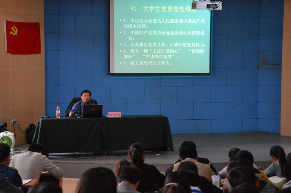 学院副院长倪建发作《谈中华民族伟大复兴下的大学生党性修养》讲座。他引入“中国梦”,就此分析并分享自己见解,使在场学生深有感悟。通过讲述西汉、唐朝、宋朝、元朝、明朝、清朝中国曾经的辉煌历程以及周边国家的见闻,汉字,姓氏与中国的密切关系,倡导大学生要以伟大复兴为前提注重自我修身,加强学习增强本领;要有社会责任感;要树立创业创新理念和精神和正确的核心价值观。