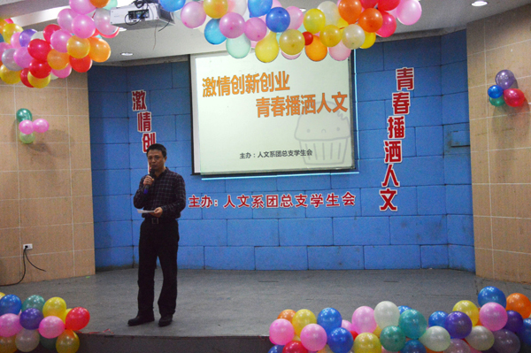 四月是万物复苏的季节。地上长出嫩嫩的新芽,到处都是生机勃勃的景象。4月18日晚,人文系创新创业教育活动之一—“激情创新创业,青春播洒人文”主题活动在学院阶梯大教室举行。人文系党政负责人、辅导员、各班班主任、教师代表和法语专业全体学生及各院系学生代表参加了活动。