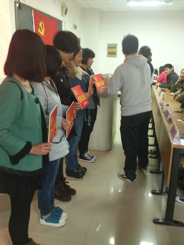 3月26日,经贸学院新发展学生党员入党宣誓及“党员之家”学生党员寝室挂牌仪式在6201教室举行。经贸学院2011级新发展学生党员、2011和2012级入党积极分子代表等117名参加。经贸学院党总支书记项光春、各学生党支部书记、辅导员等出席会议。