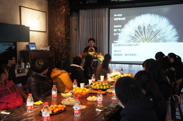 江思珀整合传播有限公司总经理钟俊岭先生以深入浅出的方式向同学们阐述了梦想、视野和读书对同学们的良好影响,并解答了与此相关的提问。辅导员苏佳丽(思珀公司)带领师生共同回忆两个月以来在创意学院及课外实践活动过程中学习的点滴过程,讲师代表还带来了为学生精心准备的小礼物。毕业沙龙在良好和谐的互动氛围中进行,会上同学们踊跃发言,畅谈心中所想。校企合作办台新民主任对下一步校企共建成立国际设计学院及深化合作做了介绍,并为同学们颁发了结业证书,为“实用创意班”划下了圆满的句号。