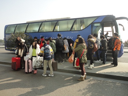 随着期末考试的结束,学生陆续开始返乡与亲友团聚。但是学生返乡时需要携带大量行李,加之天寒地冻,温州火车南站、双屿客运中心等站点路途遥远,如果乘坐出租车,花费又太高。正是看到了学生的需要,在学生大量返乡之际,学生处与各部门通力合作,安排了三辆大巴车,开通了学院至温州火车南站、学院至温州火车站、学院至双屿客运中心三条线路,免费送学生返乡。