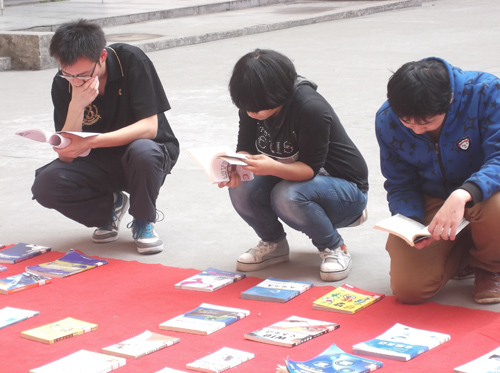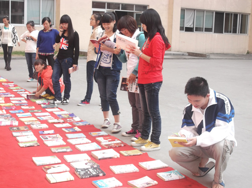 10月29日中午,图书馆和英语俱乐部联盟在学子广场举办英语读书会。英语俱乐部联盟同学精心挑选的300多本有关英语的书籍整齐摆放在红地毯上供同学们阅读欣赏。活动为广大英语学习爱好者提供一个展现自我和相互交流的平台,吸引了一批又一批同学,并把英语实践到日常生活中去,丰富了学生的课余生活。