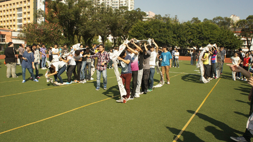 活动现场气氛热烈,加油声此起彼伏,观众也是热血沸腾。以班级为单位的无敌风火轮和拔河比赛更是把活动的气氛推向最高潮,尽显本学院学生团结友爱的良好风采。