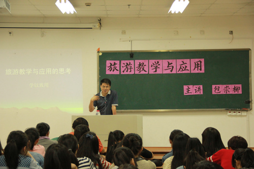 10月15日晚,六号教学楼6202教室,酒店导游专业学生聚集一堂,认真聆听浙江省饭店协会副秘书长包崇柳老师讲课。包老师以旅游教学与应用为主题,结合酒店管理及旅游接待案例,为大家分析了温州旅游现状与发展前景,提出了“学以致用”的专业学习理念。他的讲课深入浅出,幽默风趣,情绪饱满,课堂气氛十分活跃,掌声不断。包崇柳老师作为温州旅游界的名师名家,在旅游界享有盛誉,管理学院这次邀请他走进课堂为学生授课,是分院今年以来开展“业师进课堂”活动的内容之一。在15日下午,精诚国旅总经理助理张黎也在导游实训室给学生上了一堂《导游拟景组织实训》课,学生反映良好。