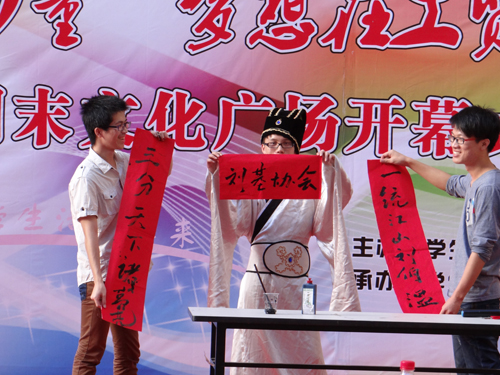 欢声笑语,你我用心倾听;文化凝聚力量,梦想在工贸飞扬。本届周末文化广场开幕式在宣传校园社团文化的同时,极大地丰富了我院学子的课余生活,展示了我院丰富多彩的社团文化,让同学们在紧张的学习生活中放飞心情,寻找文化带来的快乐,让同学们在大学生活中留下一段美好的回忆;周末文化广场的启动有利于更多的同学参与到学院社团活动中来,为广大学生的成长成才提供肥沃的精神食粮。