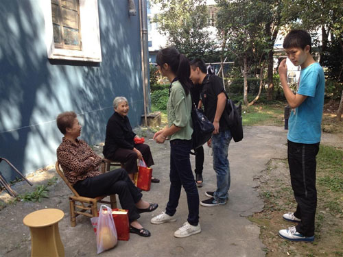 留校学生看望社区老人