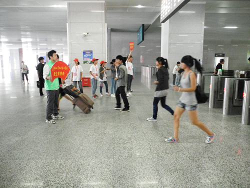 9月14日、15日两天,学院500余名志愿者分校内、校外两个阵地全面迎接和服务2012级新同学。校园内随处可见志愿者忙碌的身影:新生报到点、校车下车点、行李寄存处、迎新咨询点、家长休息区、办理缴费注册处和学生宿舍各个迎新点上志愿者责任到人,衔接顺畅,让新生体会到了热情、便利、周到和快捷。校外在温州动车站、温州火车站、温州客运中心等6个温州客运集散点,8辆固定站点接新车和1辆机动应急车从早晨7点开始投入接站和迎新工作;在统一的调度中心下,当新生下车后便可以看到身着学院志愿者服装的迎新志愿者,实现了最大限度的运送新生到学校的任务。另外,学院为学生家长提供免费的午餐、统一安排生活用品配置区为新生入学提供了十分周到的服务。