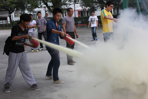 崔老师通过展示一组校园火灾图片引出主题,并运用大量的校园火灾事故的案例为大家讲解了火灾事故发生的各种原因与后果。随后崔老师详细讲解教室、寝室、食堂、公共场所等不同地方不同的消防安全隐患,做到防患于未然。此次讲座崔老师还加入了校园安全方面的内容,列举了许多校园诈骗、推销、偷盗事件,教导学生学会保护自己,共同营造和谐校园。讲座结束为了切合实际操作,全体学生来到篮球场进行消防演习——使用灭火器灭火。在认真观看了崔老师的现场示范后,同学们通过亲身体验在实践中掌握了灭火器的正确使用方法。