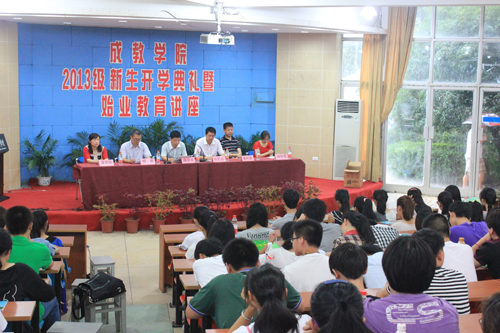 “新学期、新起点、新生活”, 9月4日,我院成教学院在1号楼阶梯教室举行了2013级新生开学典礼暨校纪校规解读。成教学院常务副院长周宗谷,成教学院党支部书记、副院长徐登喜以及成教学院各部门主任、各班班主任参加了此次典礼。