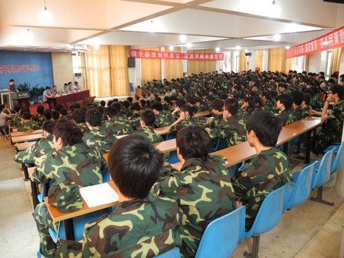 9月13日上午,我院技师学院2012级新生开学典礼暨军训动员大会在1号教学楼阶梯教室召开。出席此次典礼的领导嘉宾有海警二大队政委吴伟东、技师学院副院长程树存、全体12级新生及班主任和13位部队教官。