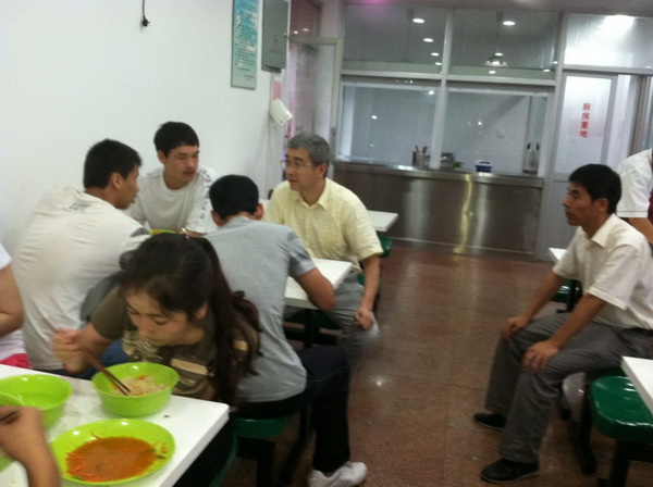 6月18日晚餐期间,学院党委副书记、院长贺星岳与总务处处长一起前往清真食堂体验就餐环境,并一同品尝了美味可口的新疆饭菜。贺院长与正在就餐的新疆少数民族学生进行了亲切地交谈,了解少数民族学生在我院一年来的学习、生活的方方面面,鼓励他们充分利用学院各种优势资源,学好专业知识,提高就业能力。他还看望总务处最新招聘的新疆籍厨师,要求清真食堂加强食品安全管理,扩大供餐能力,做好迎接下学期新一批新疆少数民族学生的餐饮供应做好充分的准备。