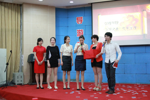 为庆祝参加第四届全国旅游院校大赛的选手载誉而归,迎接“5.19”第二个“中国旅游日”,增进导游专业与校外实训基地联系,激发学习热情和动力,管理学院管理教研室导游专业策划了第14周——“导游专业周”系列活动。5月16日晚,作为系列活动之一的“导游专业之夜”文艺晚会在阶梯教室激情上演!
