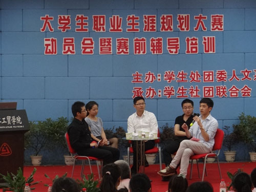 职业生涯规划专家们通过职业生涯规划书具体内容设计分析、经常出现的误区纠正、现场答辩如何出彩、如何让作品闪光、心态等方面给准备学院、省级比赛的同学们上了一课,在场同学也不放过这次学习的机会,交流环节他们提出各种问题向专家们吸取经验,甚至是如何给职业生涯规划书起个响亮的名字这样的细节问题也不放过。