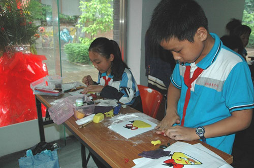 中午新温州人子女同家长一起在天一角品尝东瓯特色小吃,下午小候鸟们同他们的家长在学生志愿者的带领下来到浙江创意园体验瓯塑、瓯绣以及瓯窑的工艺制作流程。在我院瓯绣工作室邹绳珠老师和郑央凡老师以及红马甲志愿者们的悉心指导下,孩子们玩得不亦乐乎。