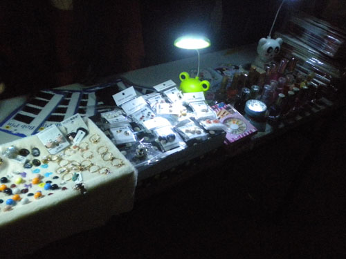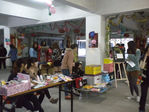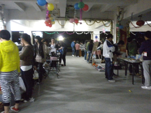 “夜市”活动正式开始,“摊主们”便开始在自己摆摊的地点忙碌起来。不久,活动现场就聚集了很多同学,一些行动派摊主便开始叫卖自己的商品,而一些比较性格内敛的摊主则是安静地等待着顾客的光临,正所谓“酒香不怕巷子深”。说到商品,除了一些精致的小摆设、小挂饰,有些摊主还批来了花式各样的帆布鞋、高跟鞋、时尚的T恤等等,可谓是应有尽有,物美价廉。许多同学都在驻足观看,并寻找自己中意的商品,淘自己的喜欢的宝贝。
