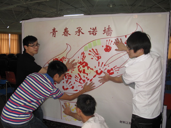 研讨会上同学们还表演了诗歌朗诵《中国少年说》,并在青春承诺墙上按下手印,表示郑重承诺。