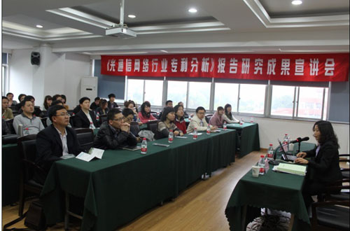 国家专利局通信发明审查部冯于迎处长介绍了国家知识产权局2011年十大专利分析普及推广项目的背景和宗旨,并结合温州建设激光与光电产业集群的实际情况,对《光通信网络行业专利分析》报告的研究成果进行了精彩宣讲,对专利分析的基本原理和技术进行了全面的介绍。卜方部长等专家还与参会人员进行了较深入的交流与沟通,耐心解答了在专利分析等实际工作中遇到的各种问题。本次宣讲会对培育温州专利分析市场、提升中介机构提供专利分享服务的能力和水平、促进企业增强专利信息运用的意识和能力、引导技术创新和专利运用等方面有重要的意义。