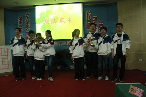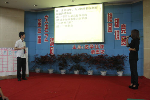 本次比赛分为四个环节,分别为选择题、填空题、判断题与主观题,从不同角度解答各种文化历史军事政治的问题。现场选手在第一轮中,各组同学均胸有成竹、表现出色,管理学院、轻工系等以满分的优势独占鳌头;第二轮填空环节,大家更是热情高涨积极回答,这充分表现出各组同学对文史知识的掌握已登堂入室,此轮比赛中经贸学院、电子系都以快、准、狠的表现令人惊叹!场上各系代表队对各种文化历史军事政治问题展开了激烈的角逐,赛事剑拔弩张。最后一轮的主观题重在考验学生们对历史的了解性和应变能力,对于参赛选手来说的确是一次很大的挑战,而各选手机灵应变、沉着冷静巧妙回答,赢得了台下的阵阵掌声与欢呼声。经过激烈的四轮比拼,管理学院荣获第一名,轻工系、电子系分别列居二、三名。